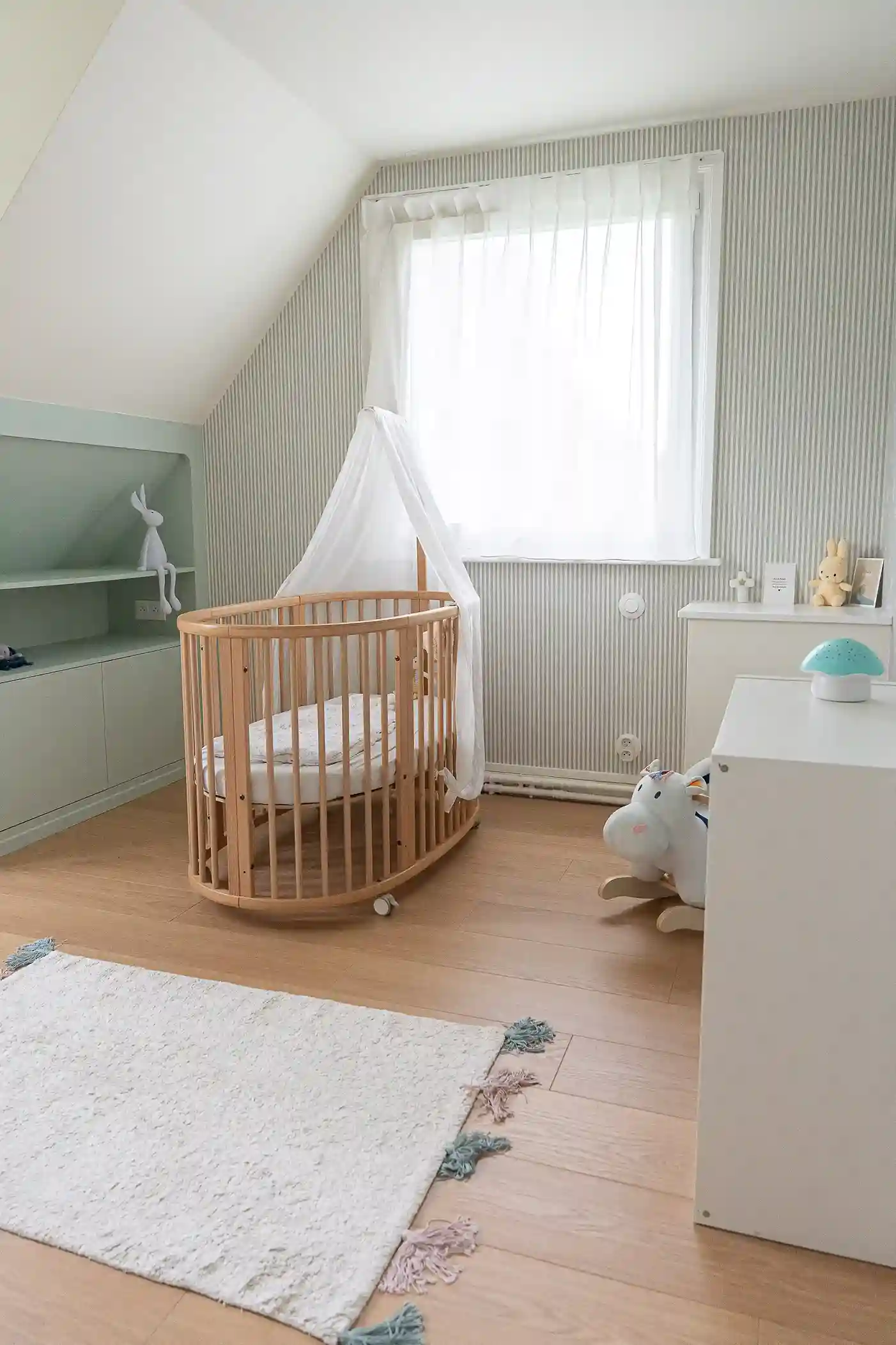 Les chambres d’enfants ont été pensées avec des matériaux à la fois pratiques et chaleureux :