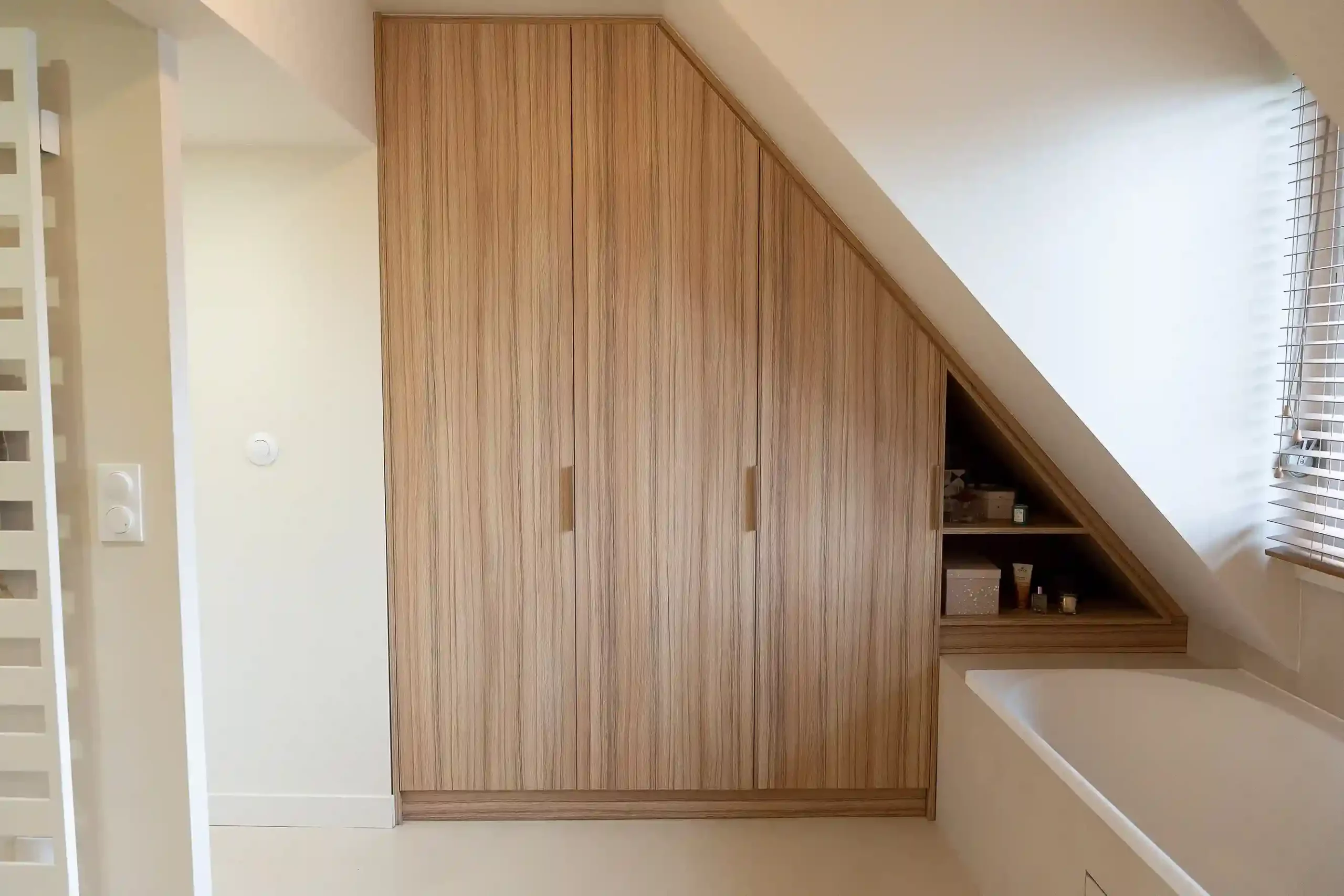 • Agencements sur mesure en stratifié bois, combinant rangements et chaleur des matériaux ;